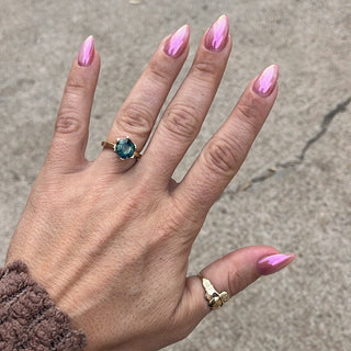 Kelly - We were working with another Jeweler in Colorado and had a bad experience. A friend told me about Balefire and we went in for a gemstone show on Valentines Day and found the perfect sapphire. From there, Jamie and Bailey were so awesome to work with for the ring design. Cody - Kelly’s constant admiration of the ring shows we went to the right place.