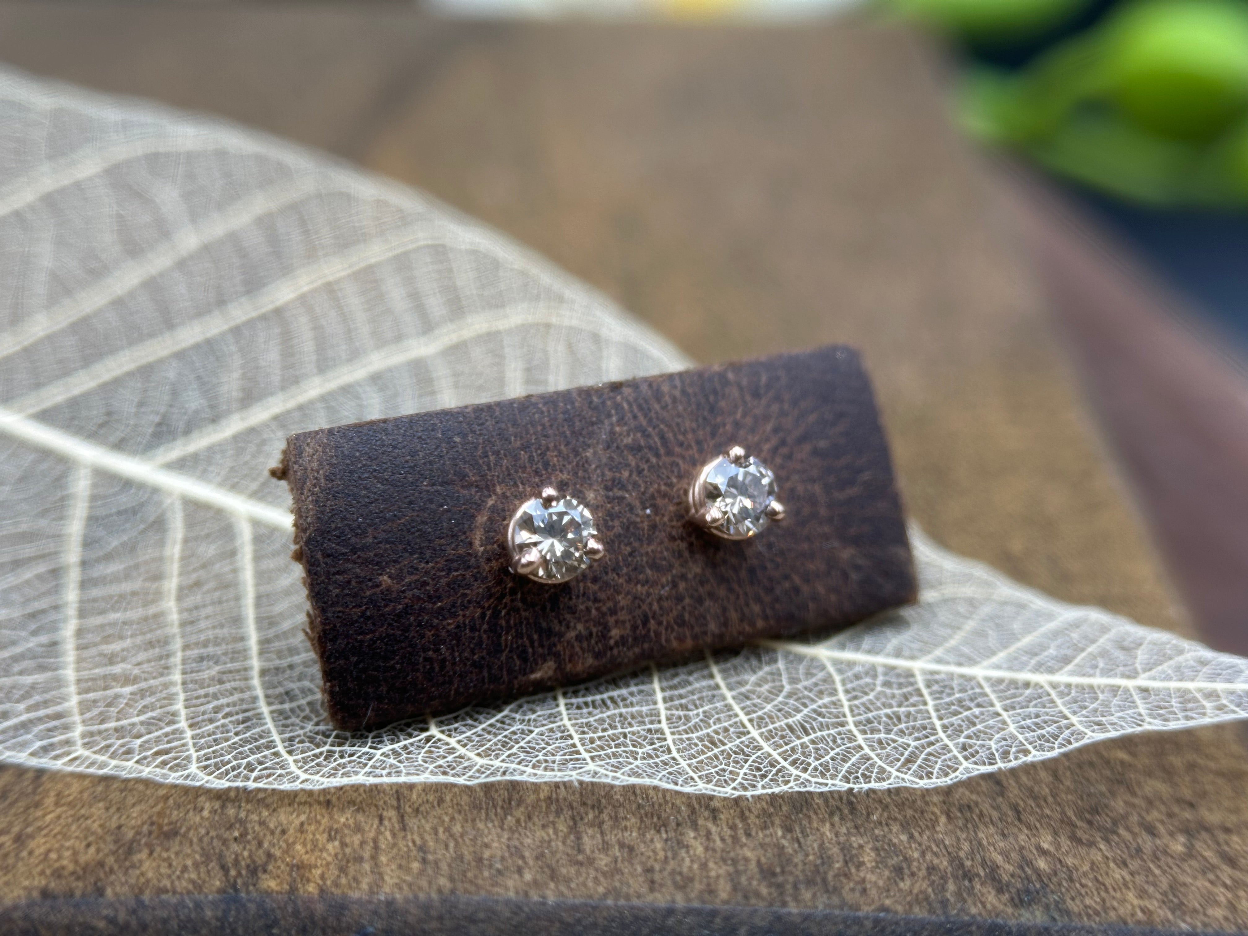 The ones you reach for every day. The Cinnamon Studs pair warm champagne diamonds with 14k rose gold for a combination that feels effortless and familiar. A classic three-prong setting keeps the focus on the stones — subtle enough for everyday wear, special enough to matter.