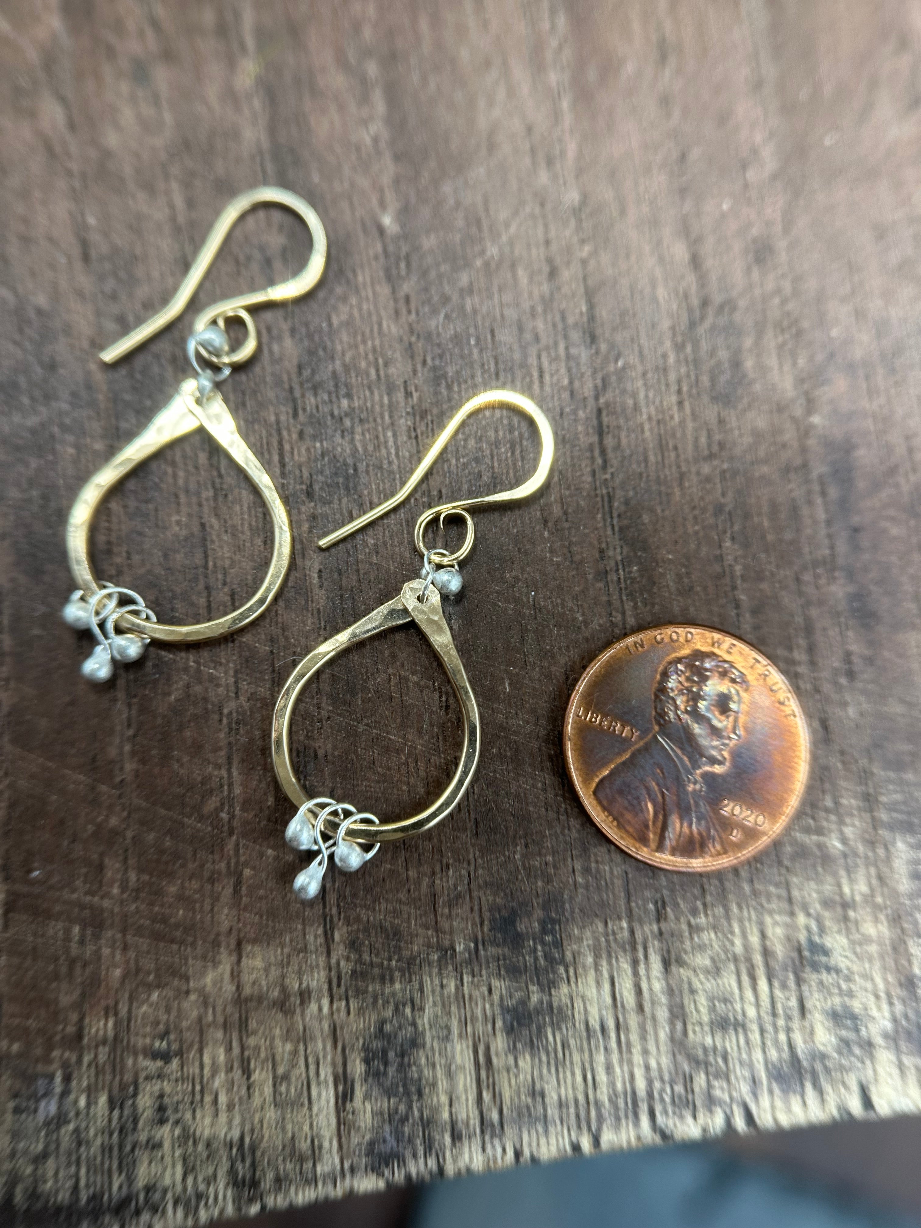 Gold-filled drops hang from gold-filled ear wires and are accented with little handmade sterling silver beads.