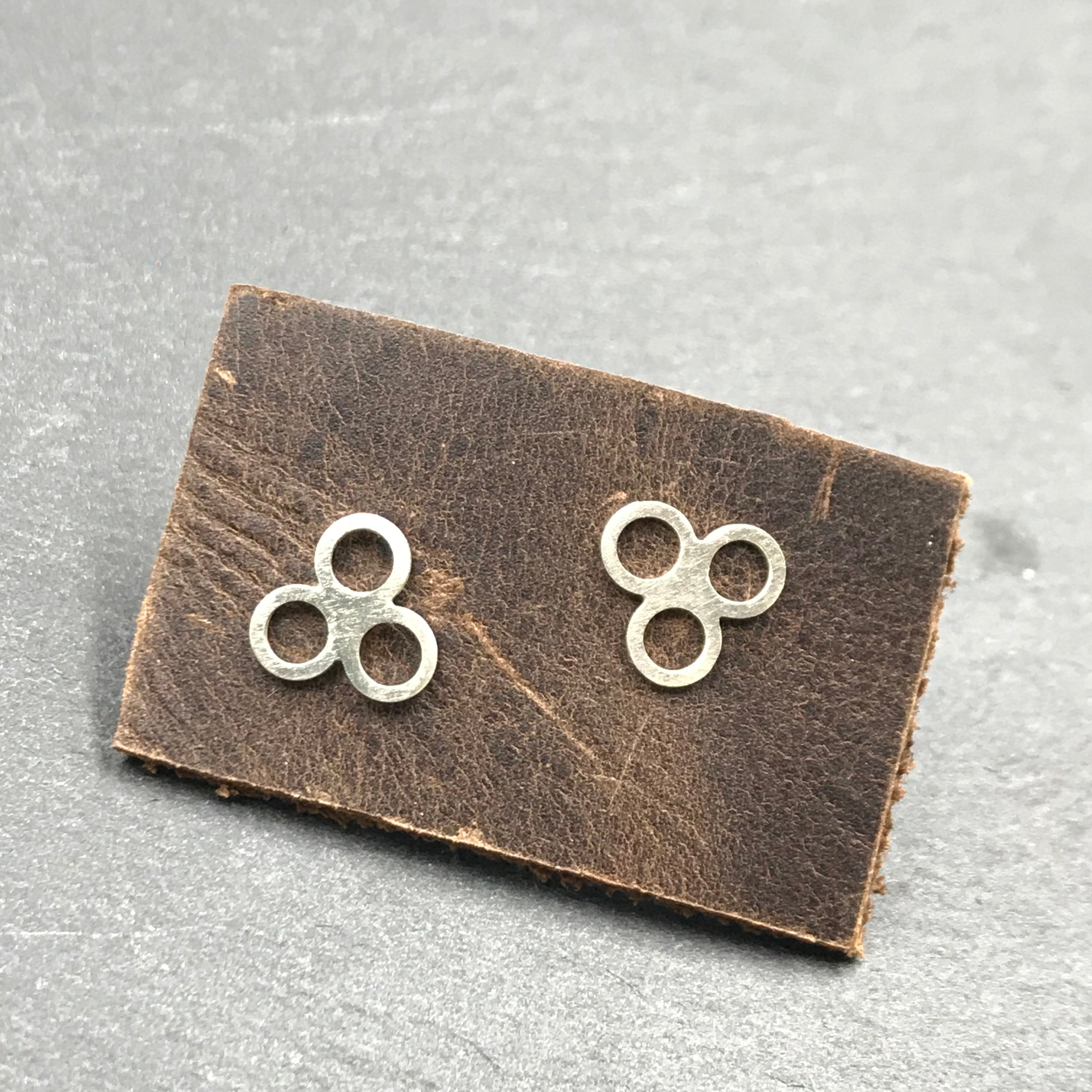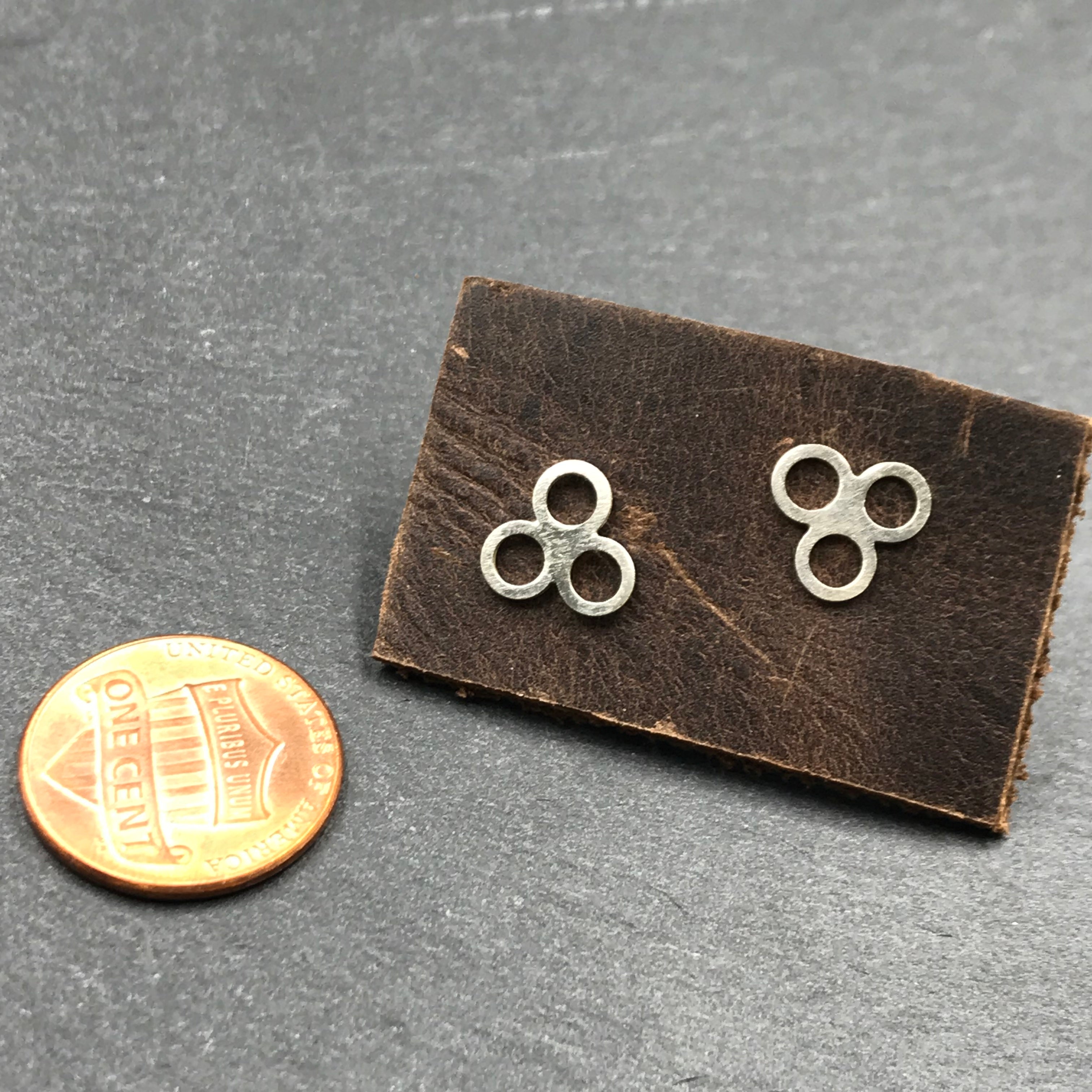 Three open sterling silver circles create these stud earrings, they are just over 1/4 inch wide. Handmade in Denver, CO.