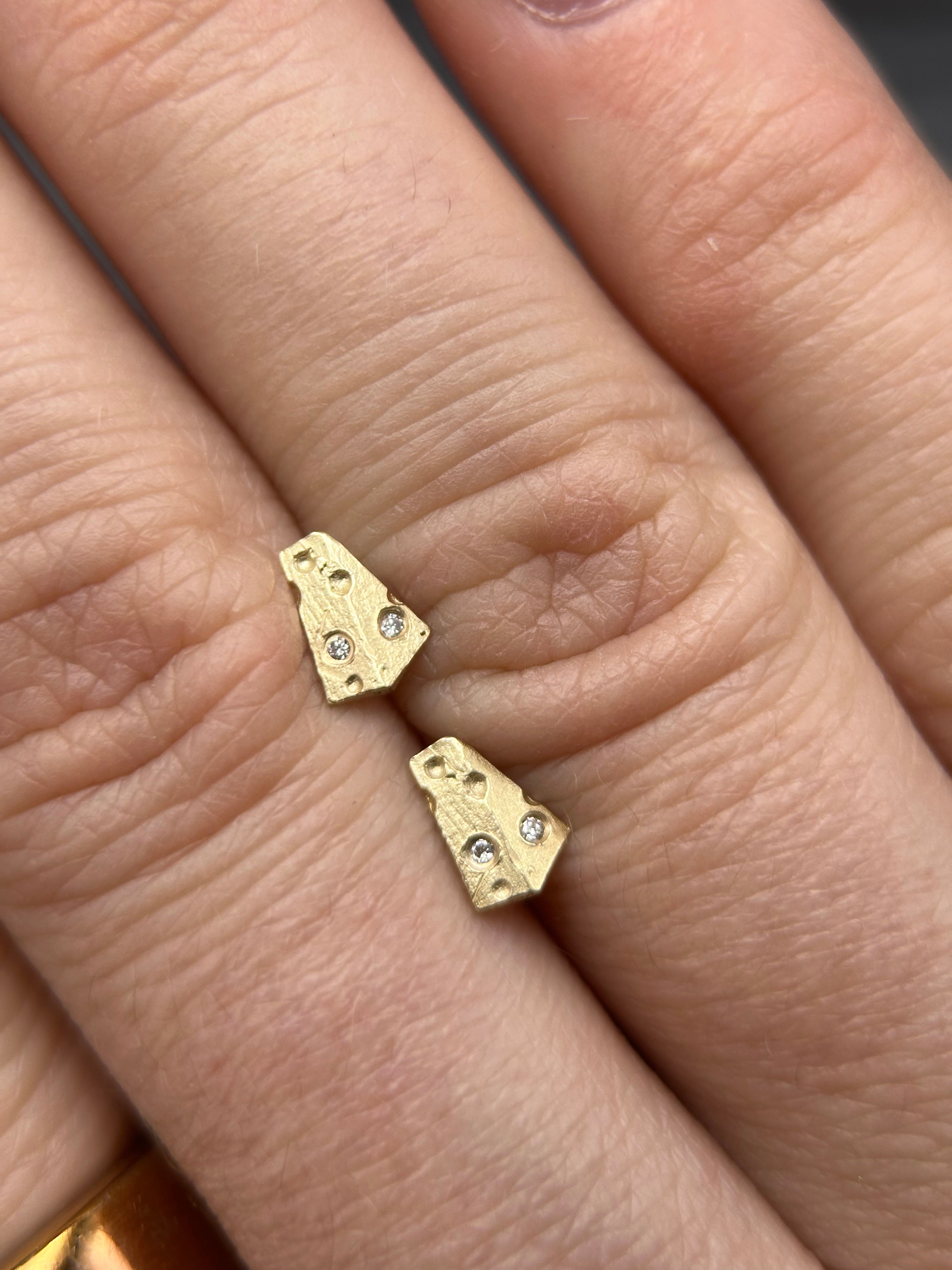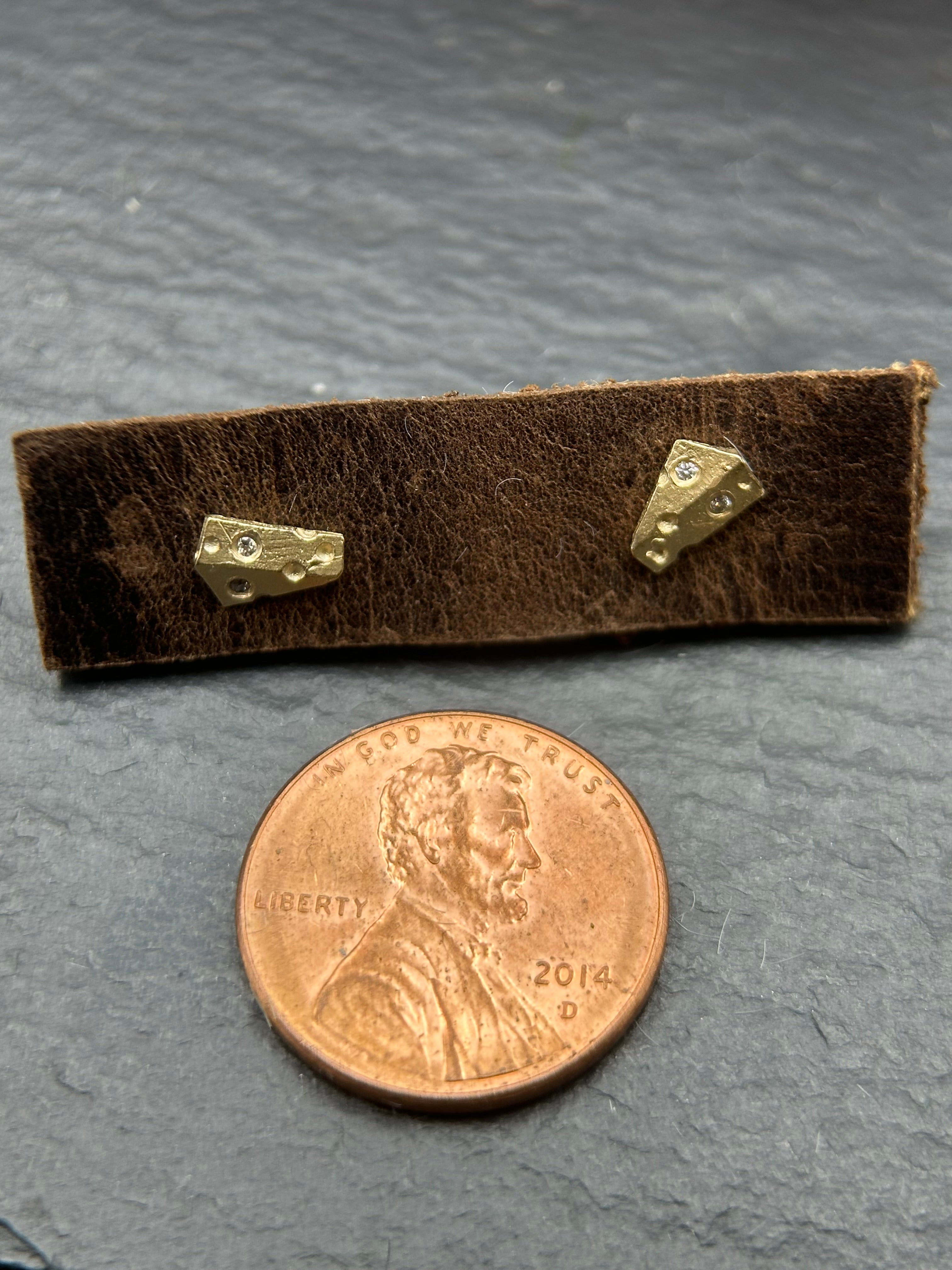 A delicate 14k yellow gold 1/4 inch cheese wedge with 2 tiny diamonds for extra sparkle (.02ctw).